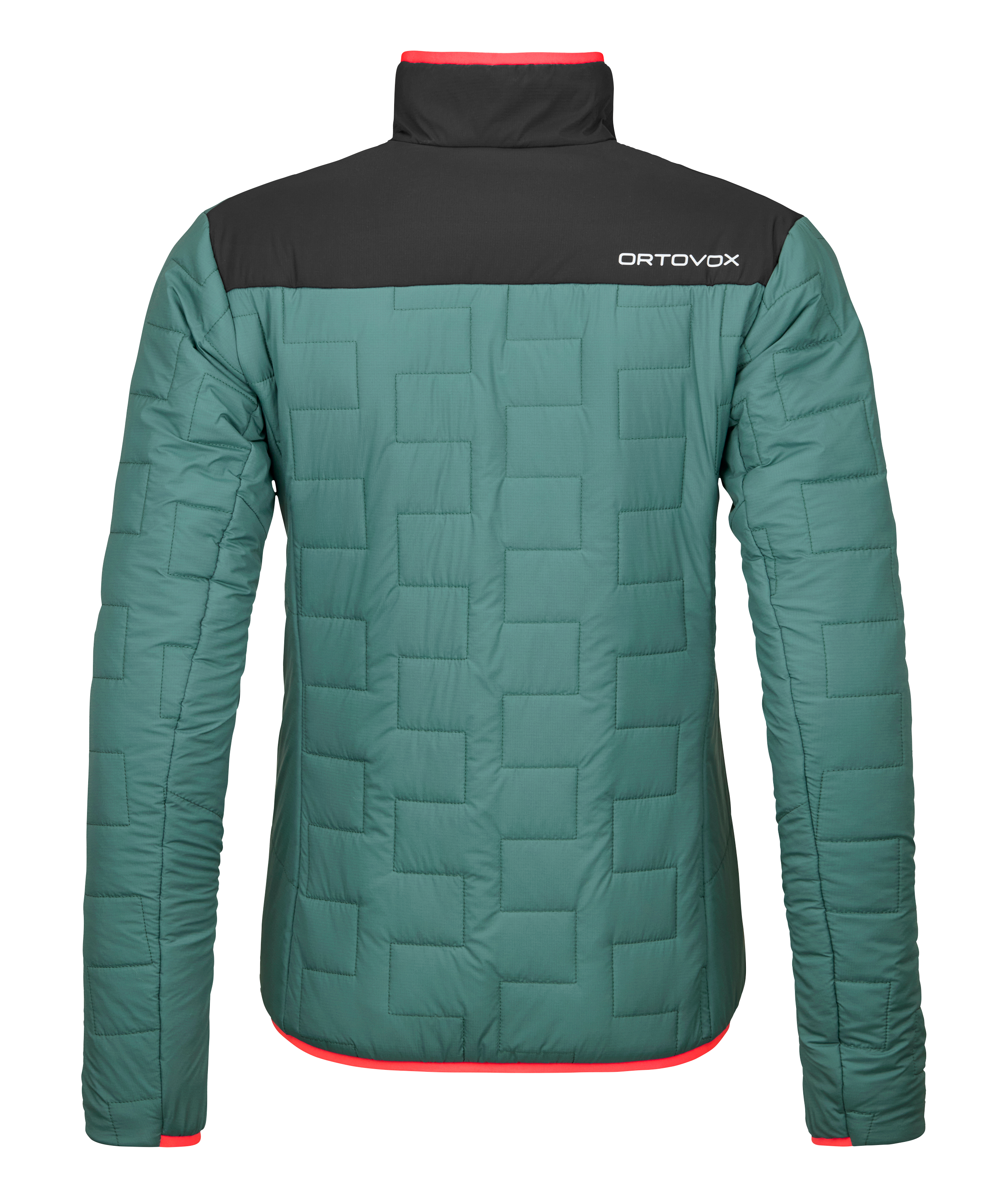 Mit ihrer 90 g/m² Swisswool-Wattierung an der Front, am Rücken, den Schultern und den Ärmel-Außenseiten gehört sie zu den wärmeren Unterziehjacken von ORTOVOX. An den Seiten, den Ärmelinnenseiten und den Achseln kommt eine leichtere 60 g/m² Füllung zum Einsatz – dadurch bietet die Jacke optimale Bewegungsfreiheit sowie höchsten Klimakomfort und ist kompakt packbar.