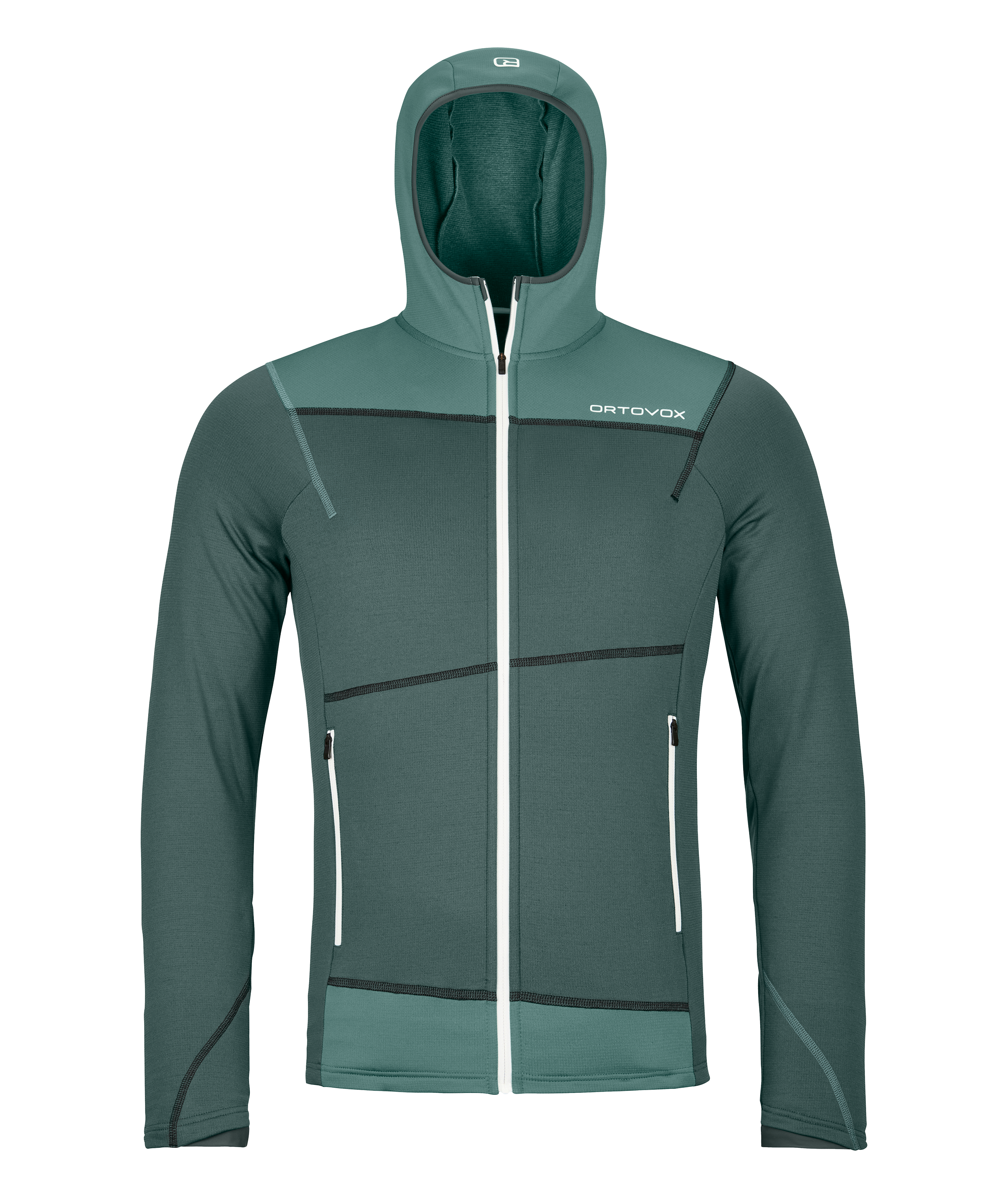 Par temps frais, les passe-pouce et la capuche bien ajustées protègent du vent et du froid de manière optimale. Les deux poches frontales offrent suffisamment d'espace pour ranger un téléphone, des barres énergétiques, etc.