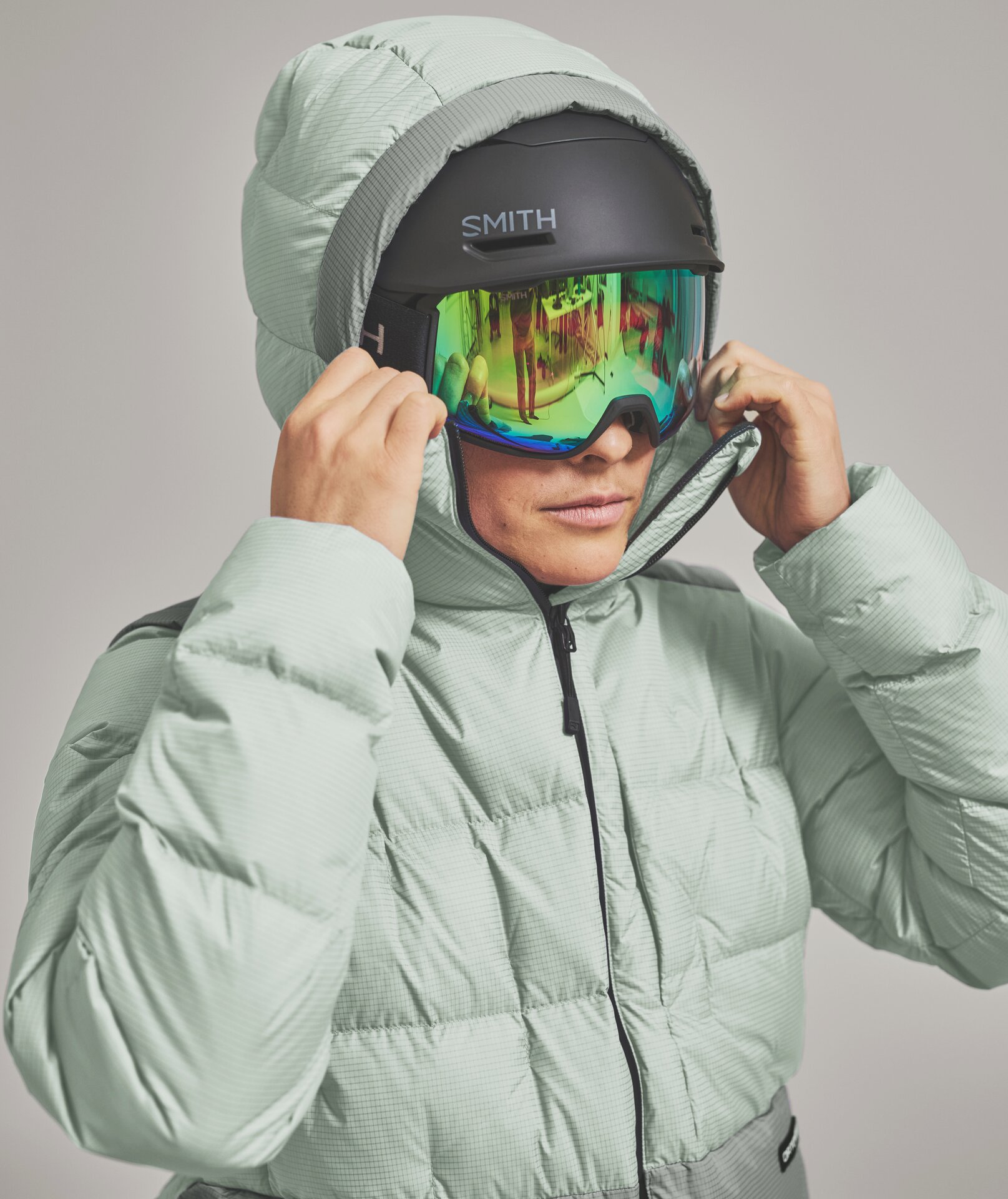 • Hood with concealed 2-in-1 adjustment (helmet compatible)