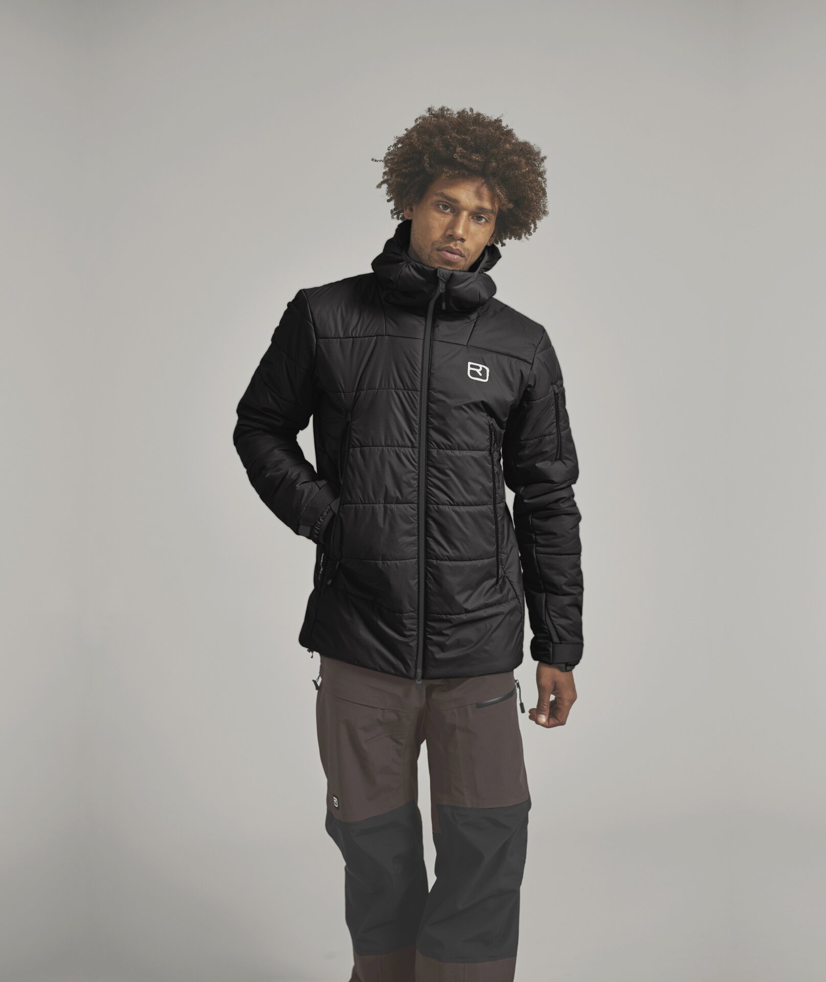 L'extérieur est fait de PERTEX® QUANTUM robuste pour assurer une bonne protection, tandis que l'intérieur contient la rare laine du mouton noir des Alpes suisses Swisswool BLACK, utilisée dans des grammages différents : devant et haut des manches en 150 g/m2 bien chaud, capuche et bas des manches en 120 g/m2 plus léger.