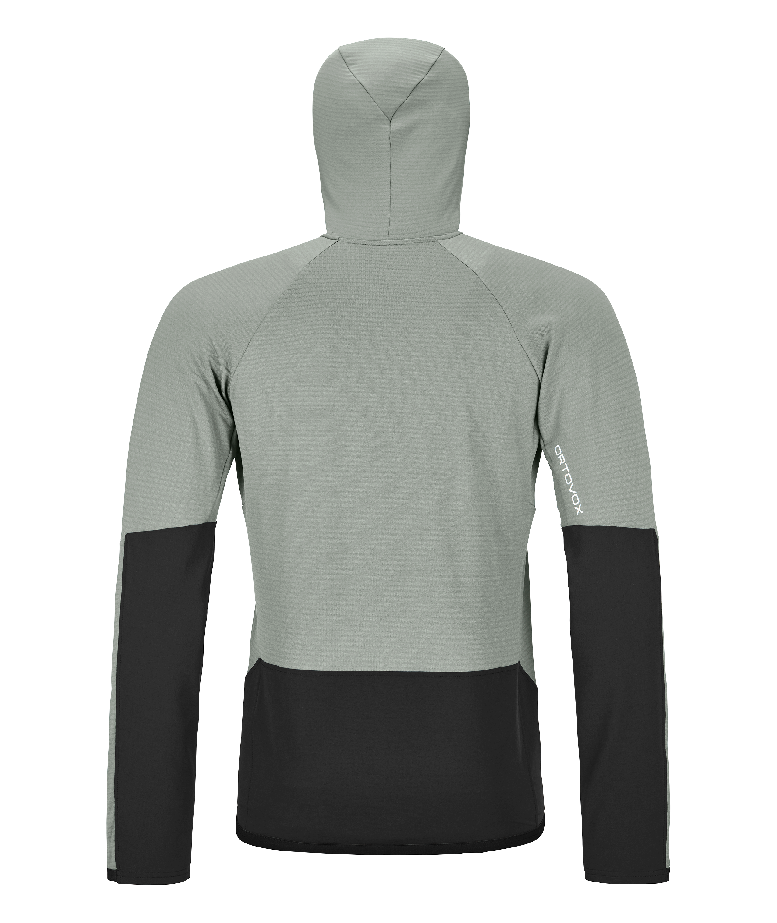 Grazie alla cerniera frontale a doppio cursore, è possibile indossare la felpa velocemente e comodamente sopra l'imbracatura per l'arrampicata. Il cappuccio preregolato protegge in modo affidabile dal vento e si può indossare senza problemi sotto il casco.