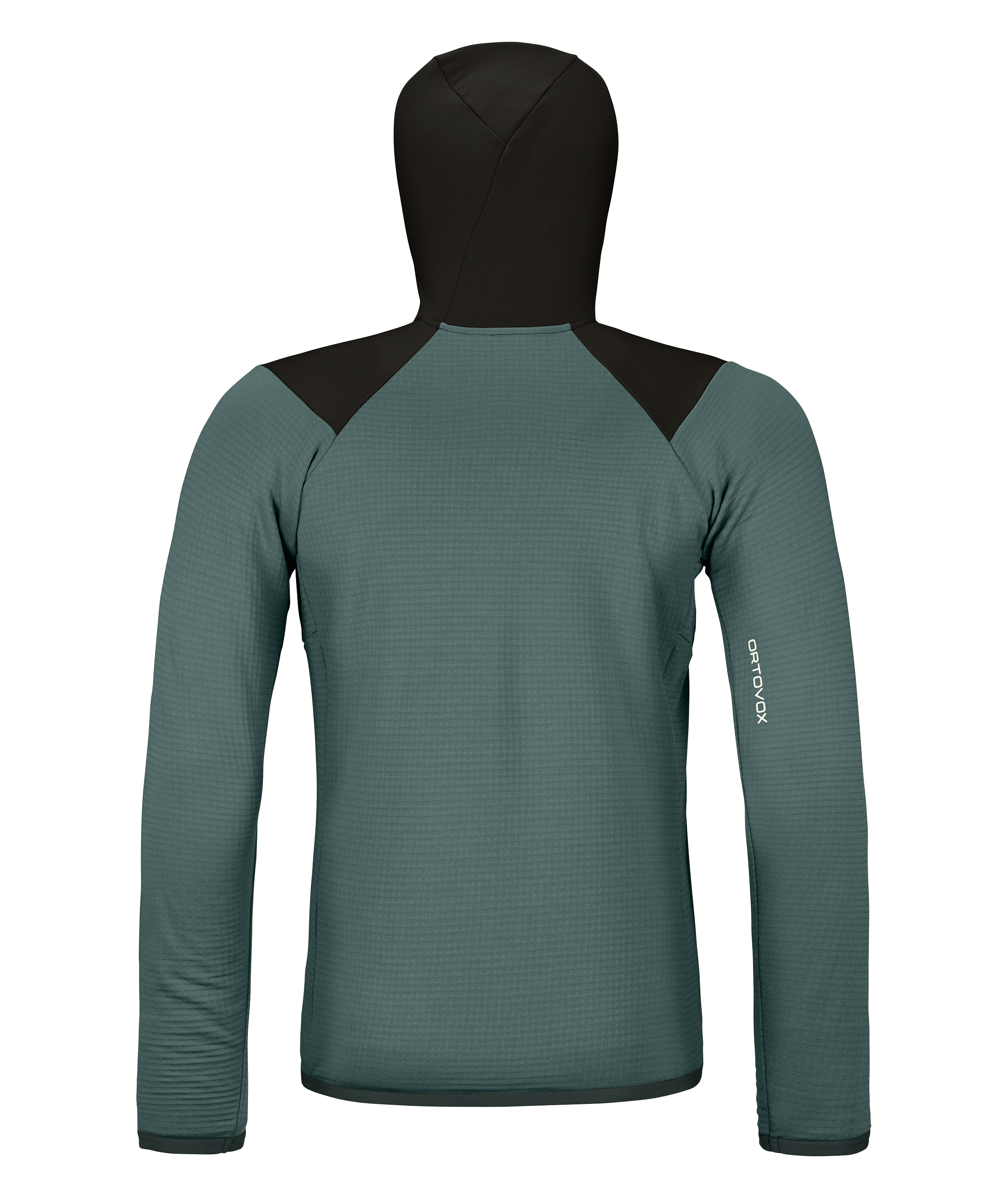 As versatile as the mountains: Thanks to a clever material mix, the FLEECE GRID HOODY for men offers comfortable warmth while providing great ventilation on demanding tours.